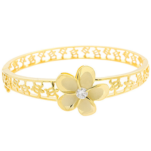 Hawaiian Jewelry 22mm Plumeria Rhodium Bangle YG Coating