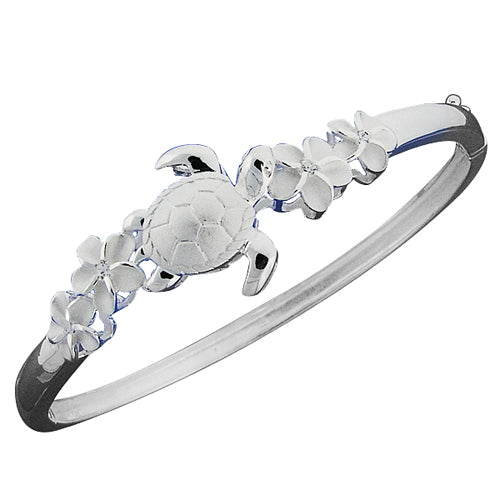 Hawaiian Jewelry B 4 Plumeria with One Tone turtle Open Bangle