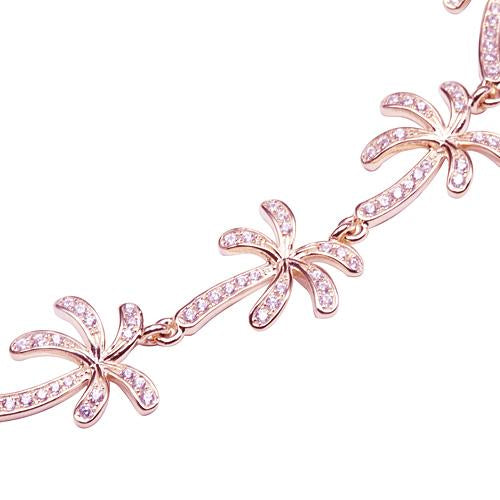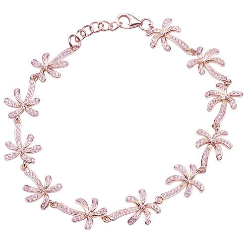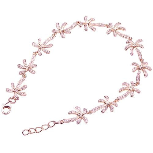 Sterling Silver Pink Gold Plated Palm Tree Pave CZ Bracelet
