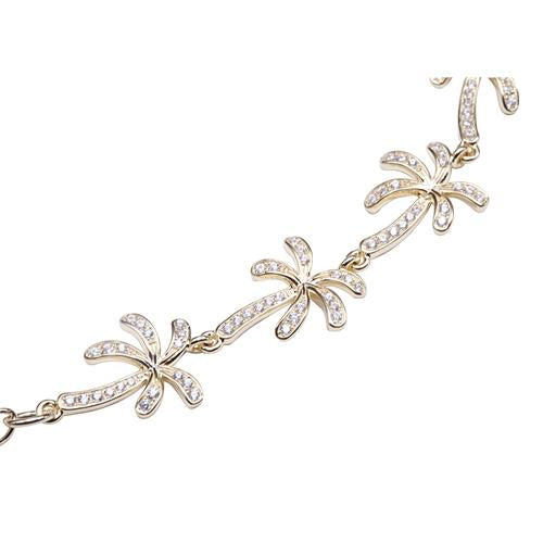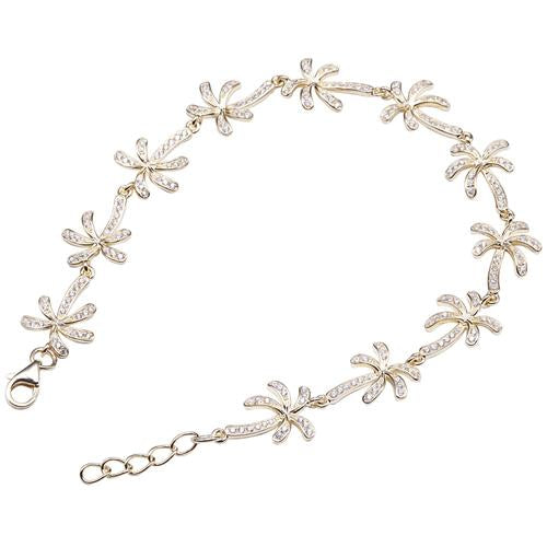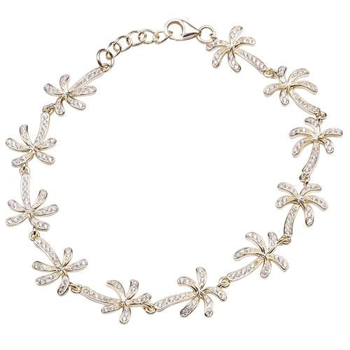 Sterling Silver Yellow Gold Plated Palm Tree Pave CZ Bracelet