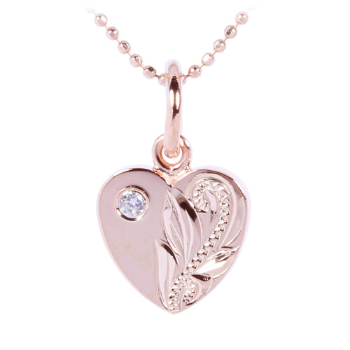 This beautiful pink gold plated heart pendant is made with 925 Sterling Silver with CZ inlaid. Hand-made scroll and Plumeria engraving. 925 Sterling Silver means the silver is alloyed with 92.5% of pure silver and 7.5% of other metal(usually copper). It is the highest concentration of silver allowed in jewelry. Please contact us if you have any question.