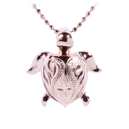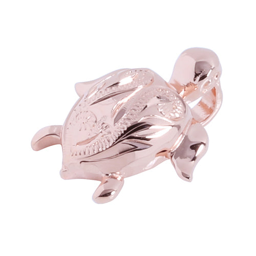 This beautiful pink gold plated turtle pendant is made with 925 Sterling Silver. Heavy weight with hand-made scroll engraving. 925 Sterling Silver means the silver is alloyed with 92.5% of pure silver and 7.5% of other metal(usually copper). It is the highest concentration of silver allowed in jewelry. Please contact us if you have any question.