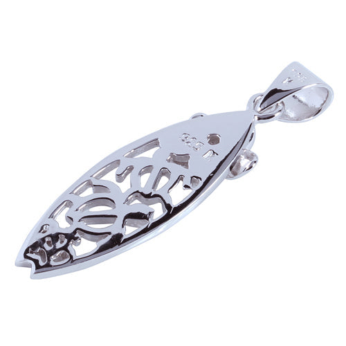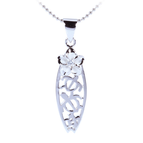 Sterling Silver Rhodium Honu Surfboard w/plumeria Pendant (Chain Sold Separately)