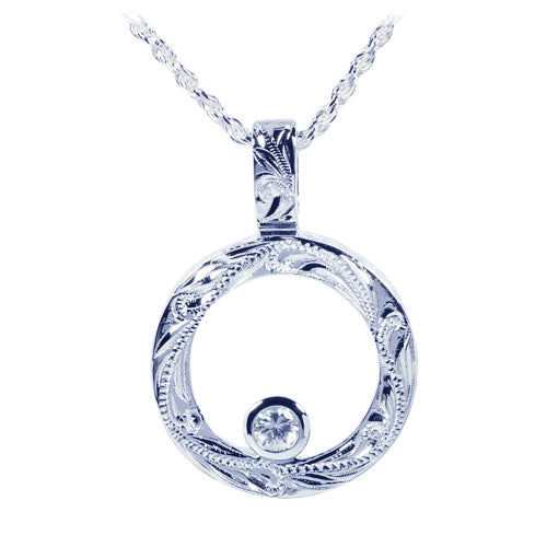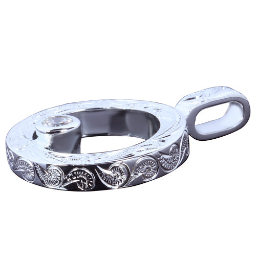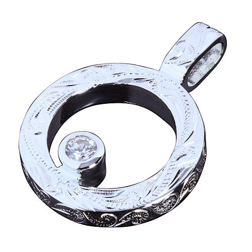 This handcrafted hawaiian heirloom circle pendant is made with 925 Sterling Silver with CZ inlaid. Heavy weight with hand-made scroll engraving. 925 Sterling Silver means the silver is alloyed with 92.5% of pure silver and 7.5% of other metal(usually copper). It is the highest concentration of silver allowed in jewelry. Please contact us if you have any question.