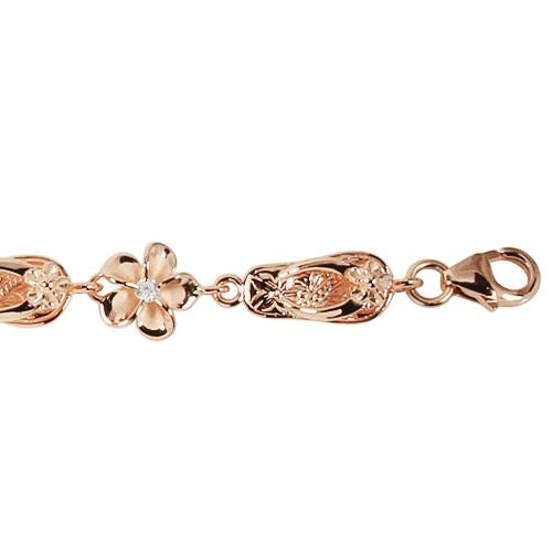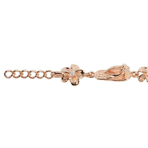 Solid 925 Sterling Silver Pink Gold Plated Slipper and Plumeria with CZ Bracelet