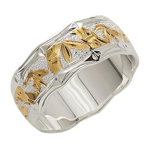 Sterling Silver Two-Tone Yellow Gold Bamboo Cut Out Edge Ring 8mm
