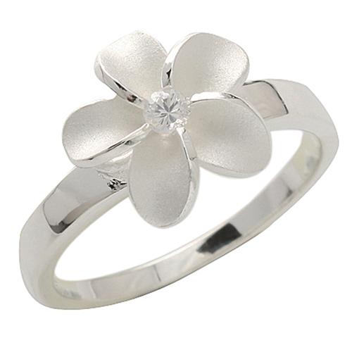 Solid 925 Sterling Silver Plumeria with CZ Ring