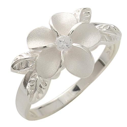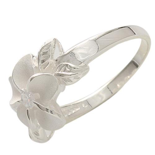 Sterling Silver Plumeria with CZ Four Leaf Ring