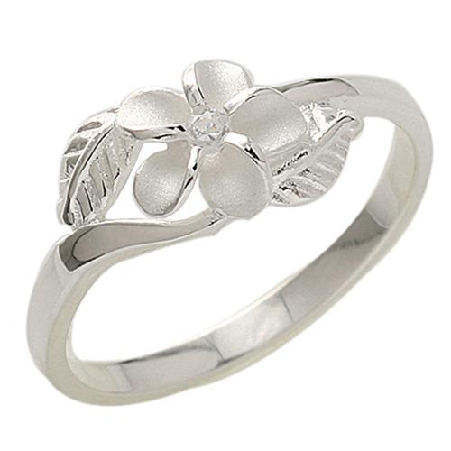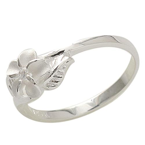 Sterling Silver 8mm Plumeria with CZ Two Leaf Ring