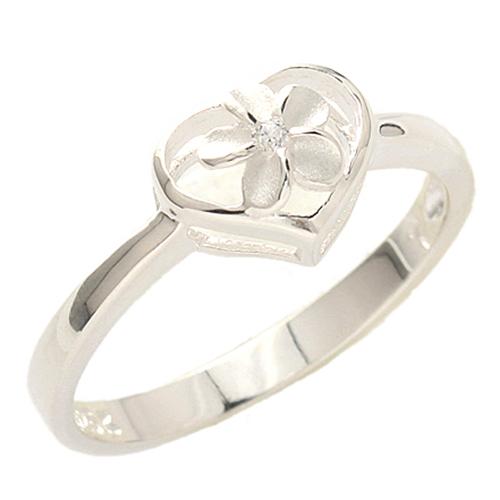 Sterling Silver 6mm Plumeria with CZ in Heart Ring