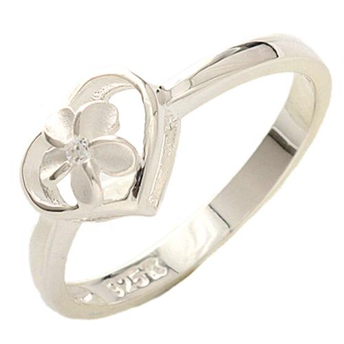 Solid 925 Sterling Silver Plumeria with CZ in Heart Ring
