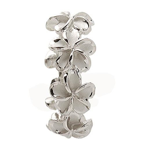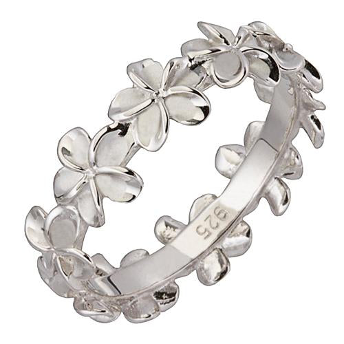 Solid 925 Sterling Silver Rhodium Plated Plumeria Lei Ring