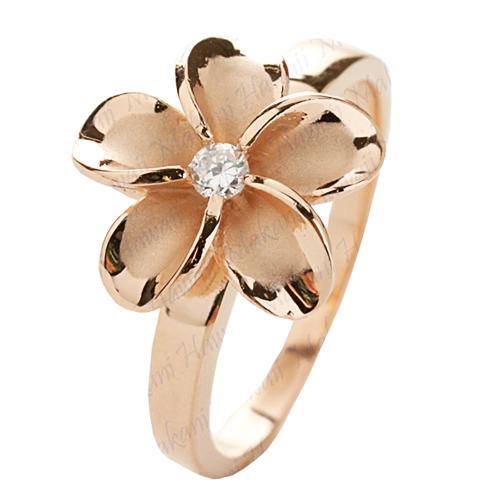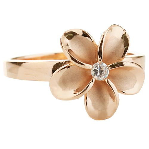 Sterling Silver Pink Gold Plated 15mm Plumeria Ring