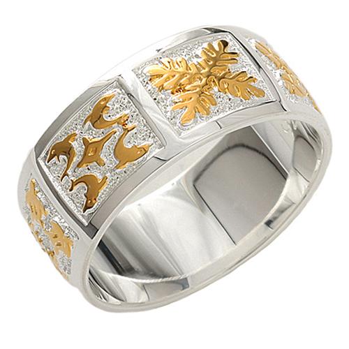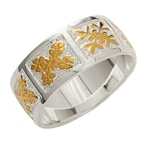 Sterling Silver Two-Tone Yellow Gold Plated Hawaiian Quilt Ring 8mm