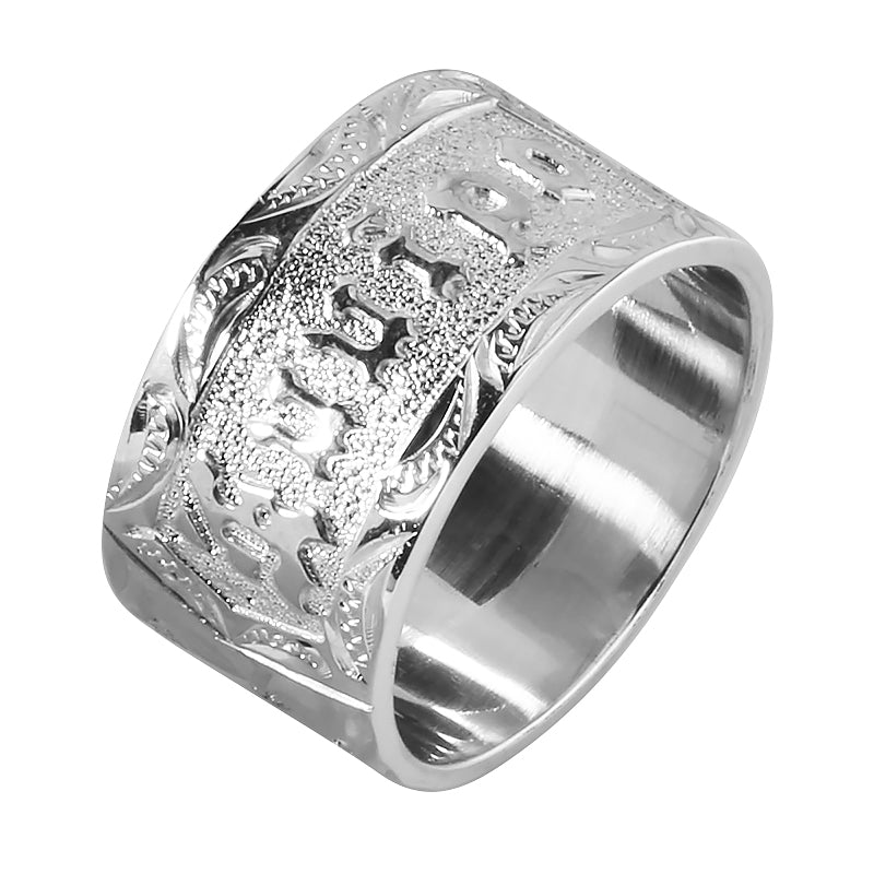 Sterling Silver Custom-Made Hawaiian Heirloom Ring Raise Letter 12mm Diamond Cut Edge(Heavy Weight)