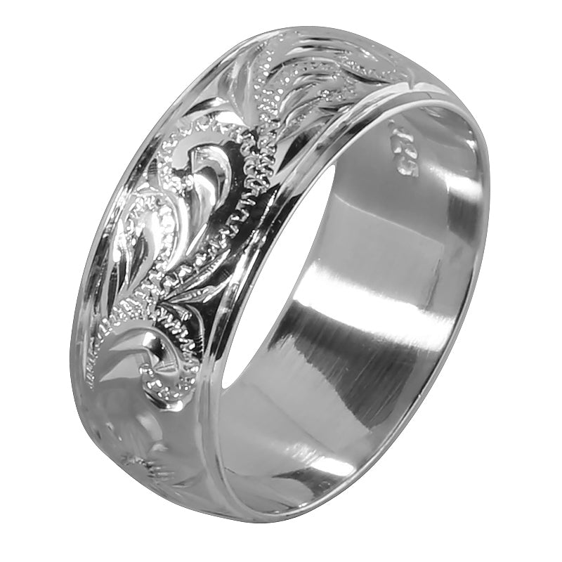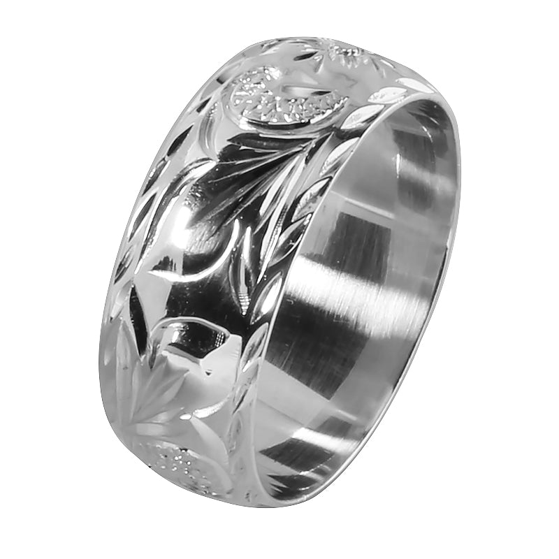Sterling Silver Custom-Made Hawaiian Heirloom Ring Flat 8mm (Heavy Weight 2.0)