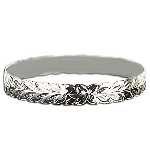 Sterling Silver Custom-Made Maile Leaf Bangle Cut Out Edge Bangle (Heavy 1.75)