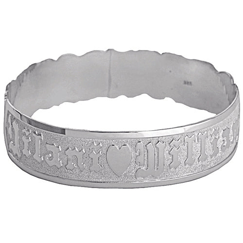 Sterling Silver Custom-Made Plumeria King Scroll Black Enamel Raise Letter Smooth Edge Bangle (Heavy 1.75)