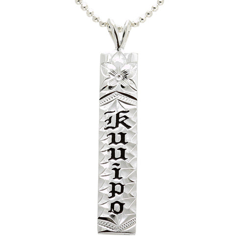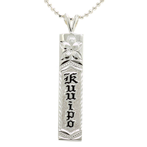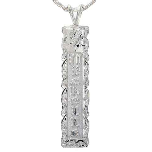 Sterling Silver Custom-Made Plumeria Raise Letter Diamond Cut Edge Vertical Pendant