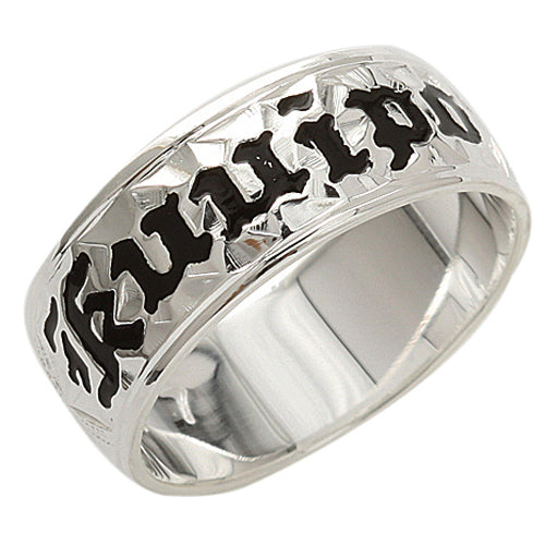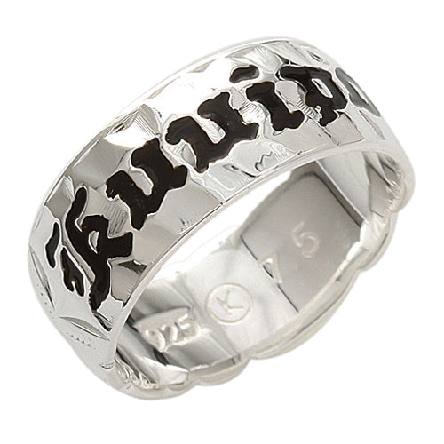 Sterling Silver Custom-Made Hawaiian Heirloom Ring Black Raise Letter 12mm Smooth Edge (Heavy Weight)