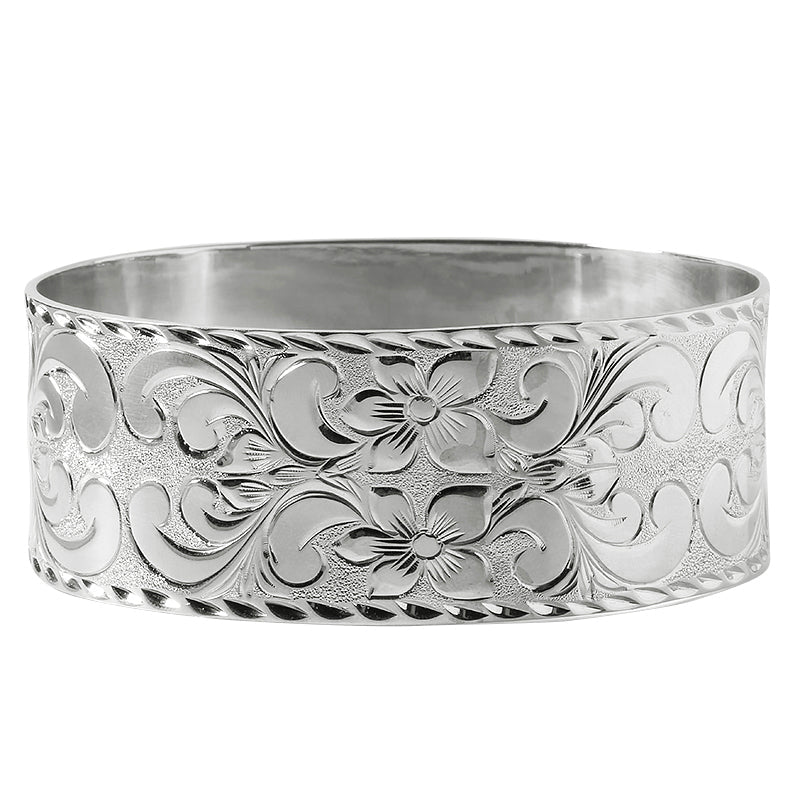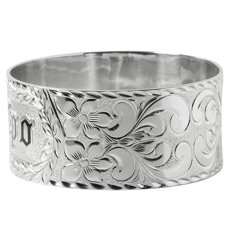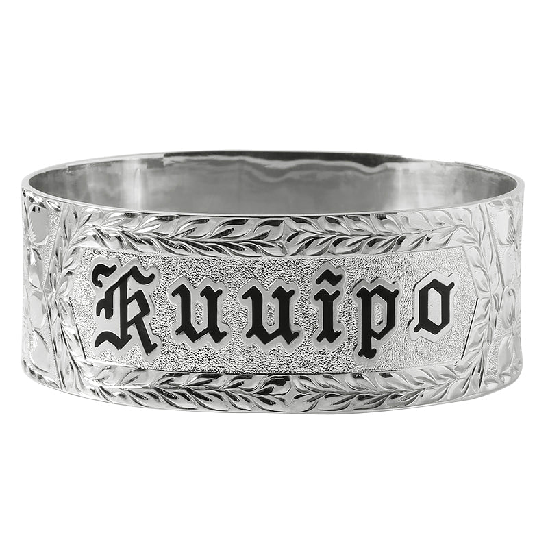 Sterling Silver Custom-Made Hawaiian Heirloom Bangle Black Raise Letter 28mm