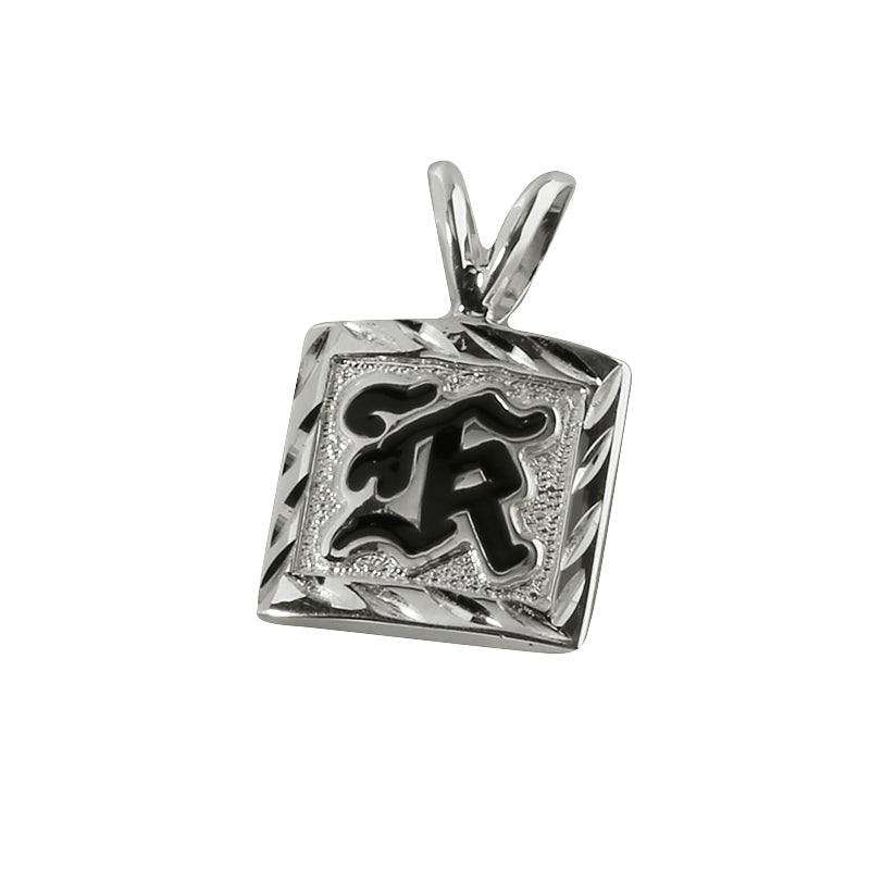 Sterling Silver Custom-Made Initial Pendant Black Raise Letter Diamond Cut Edge 12mm