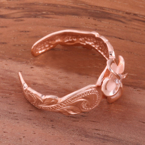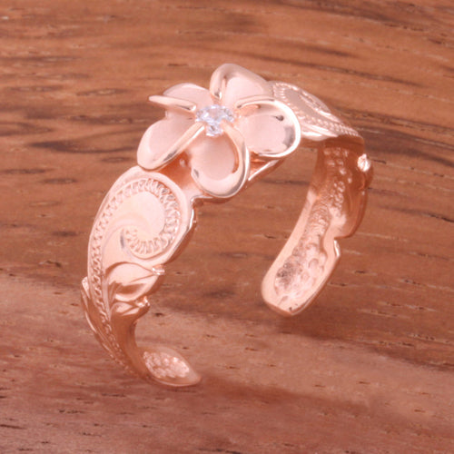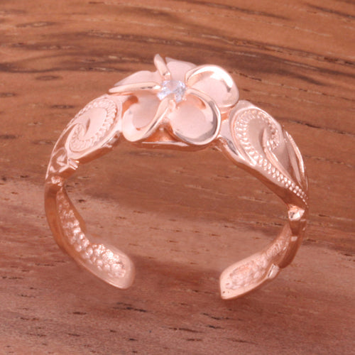 Hawaiian Scroll Pink Gold Plated 8mm Plumeria with Clear CZ Cut Out Edge Toe Ring