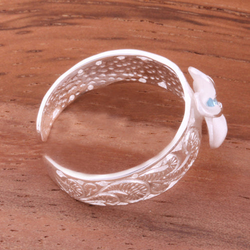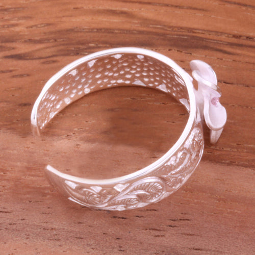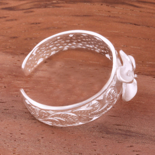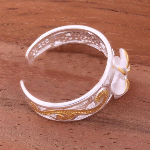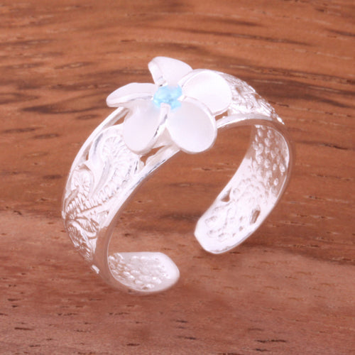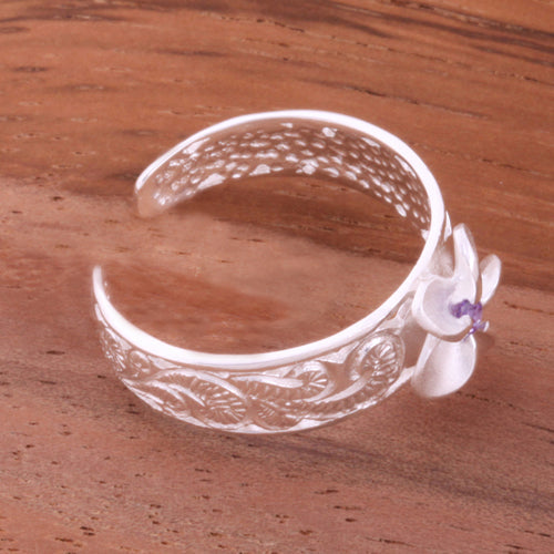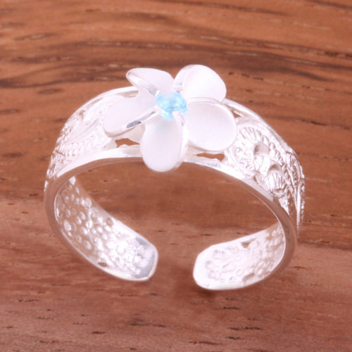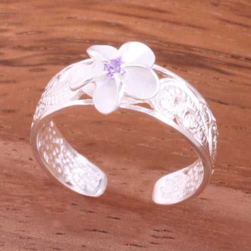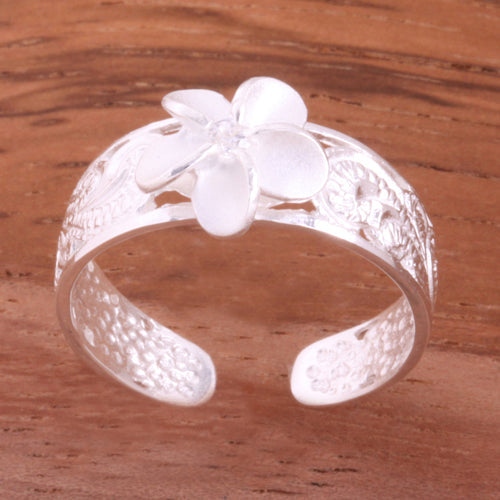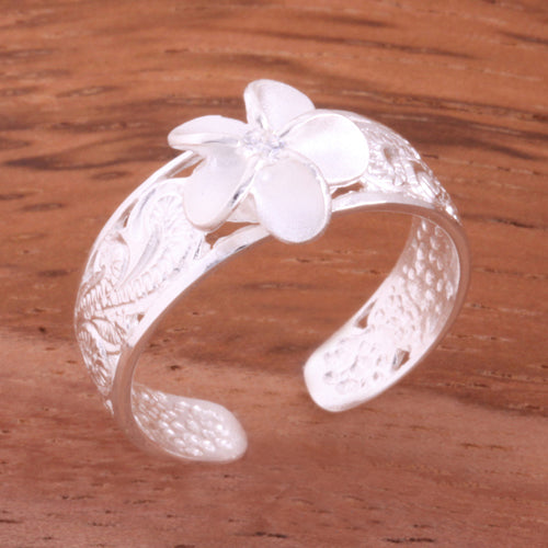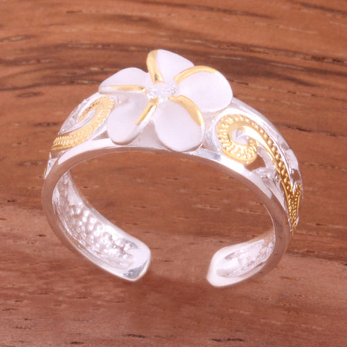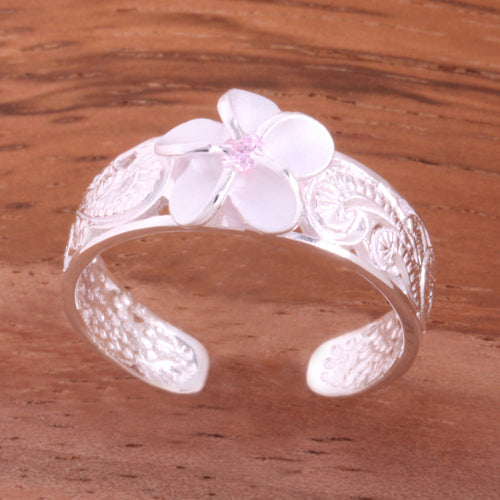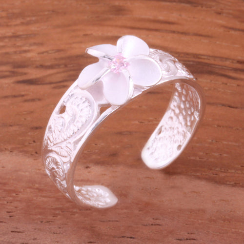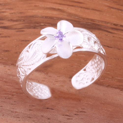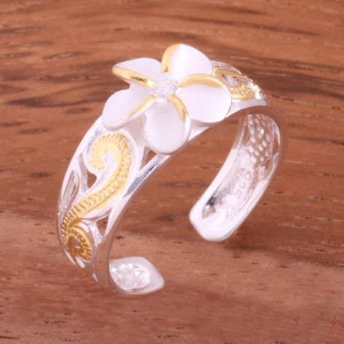 Hawaiian Scroll See Through 8mm Plumeria with Clear CZ Toe Ring