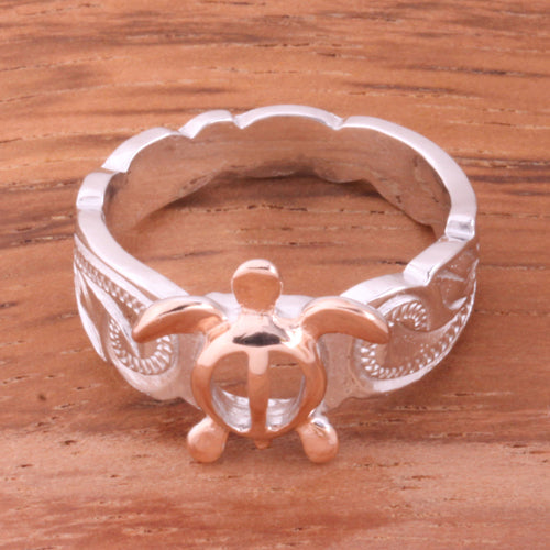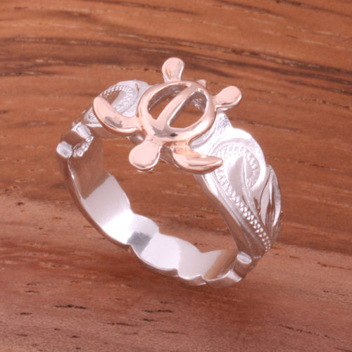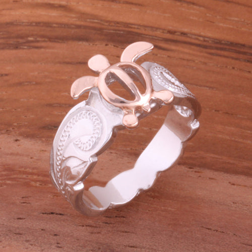 Hawaiian Scroll Two Tone Pink Gold Plated Honu Cut Out Edge Toe Ring