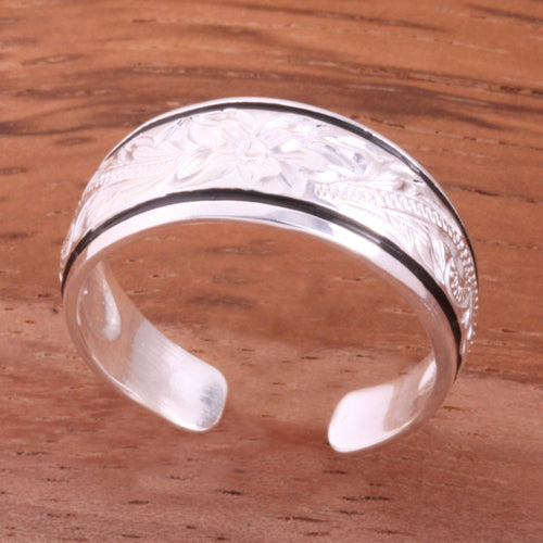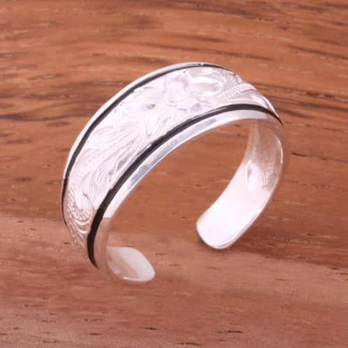 Hawaiian Scroll with Black Border Smooth Edge Toe Ring