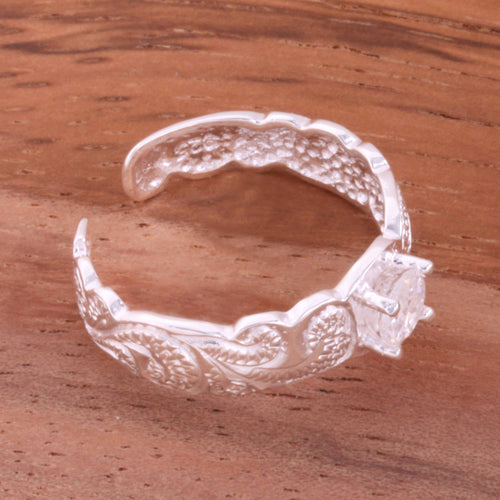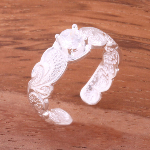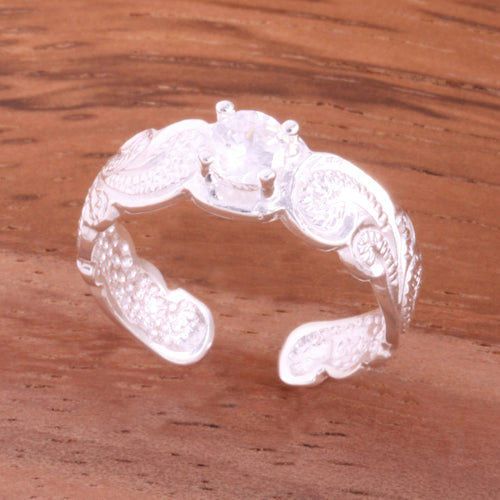 Hawaiian Scroll with Clear Round CZ Cut Out Edge Toe Ring