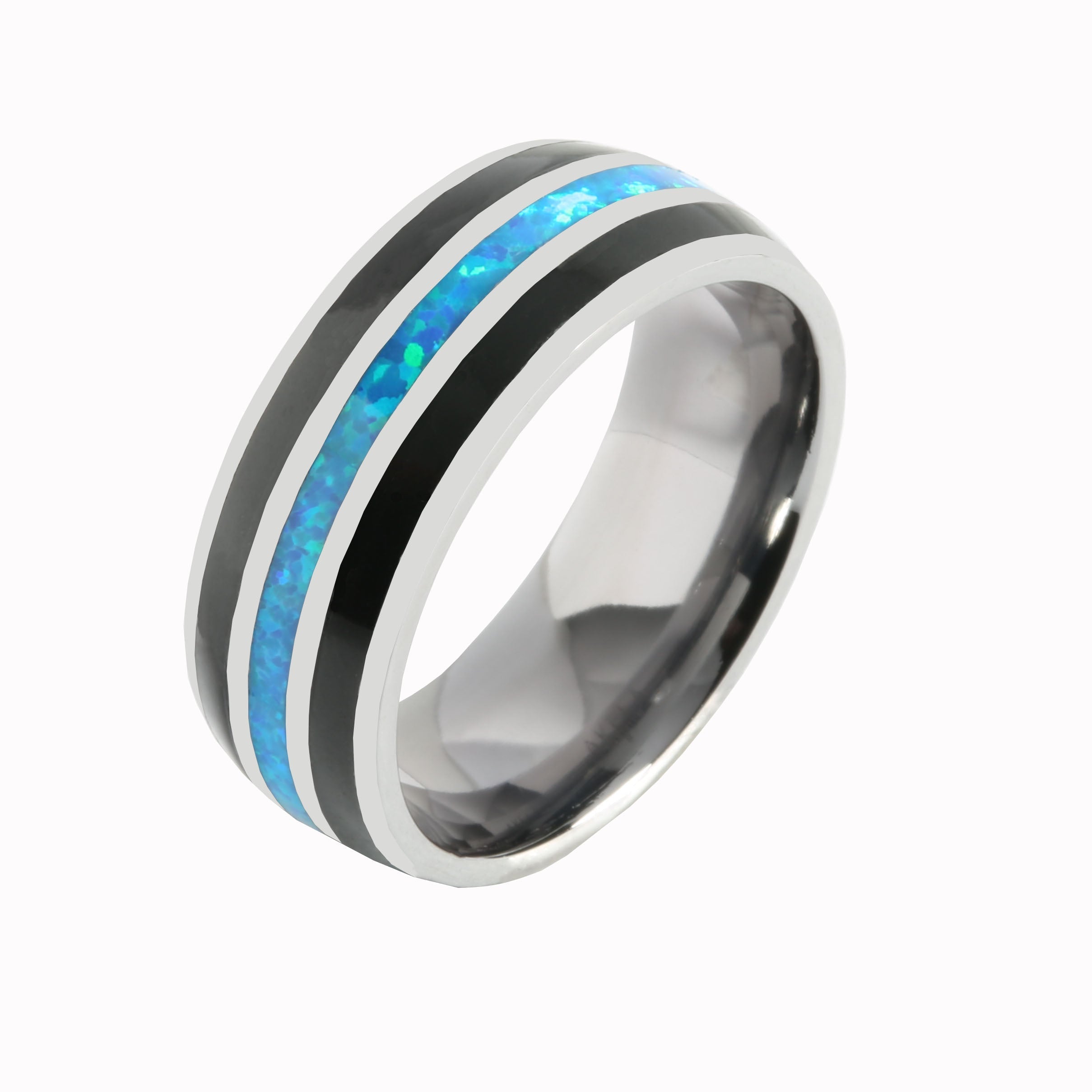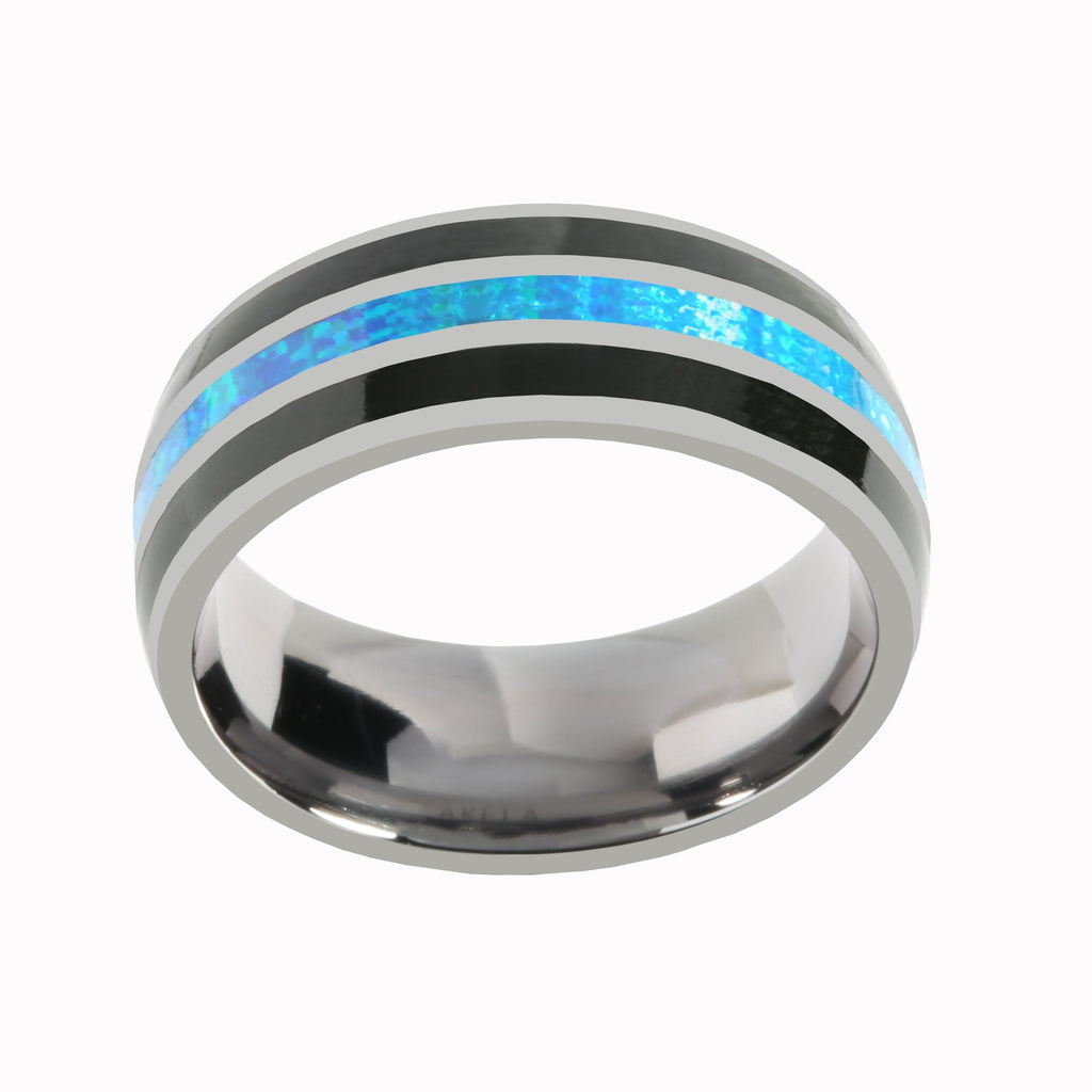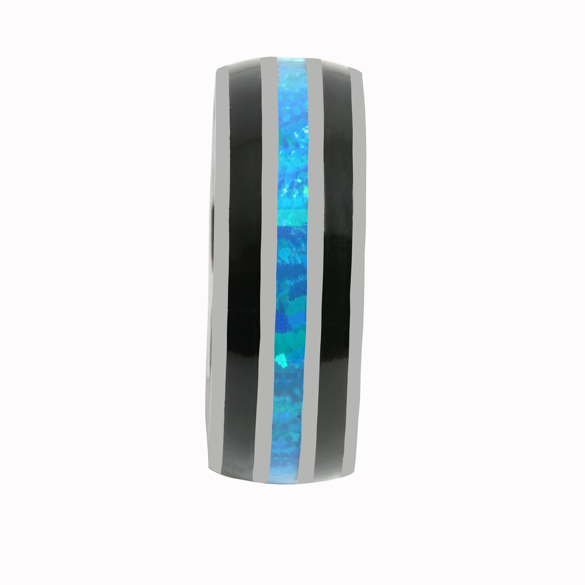 Tantalum with Onyx and Blue Opal Inlaid Wedding Ring Barrel 8mm