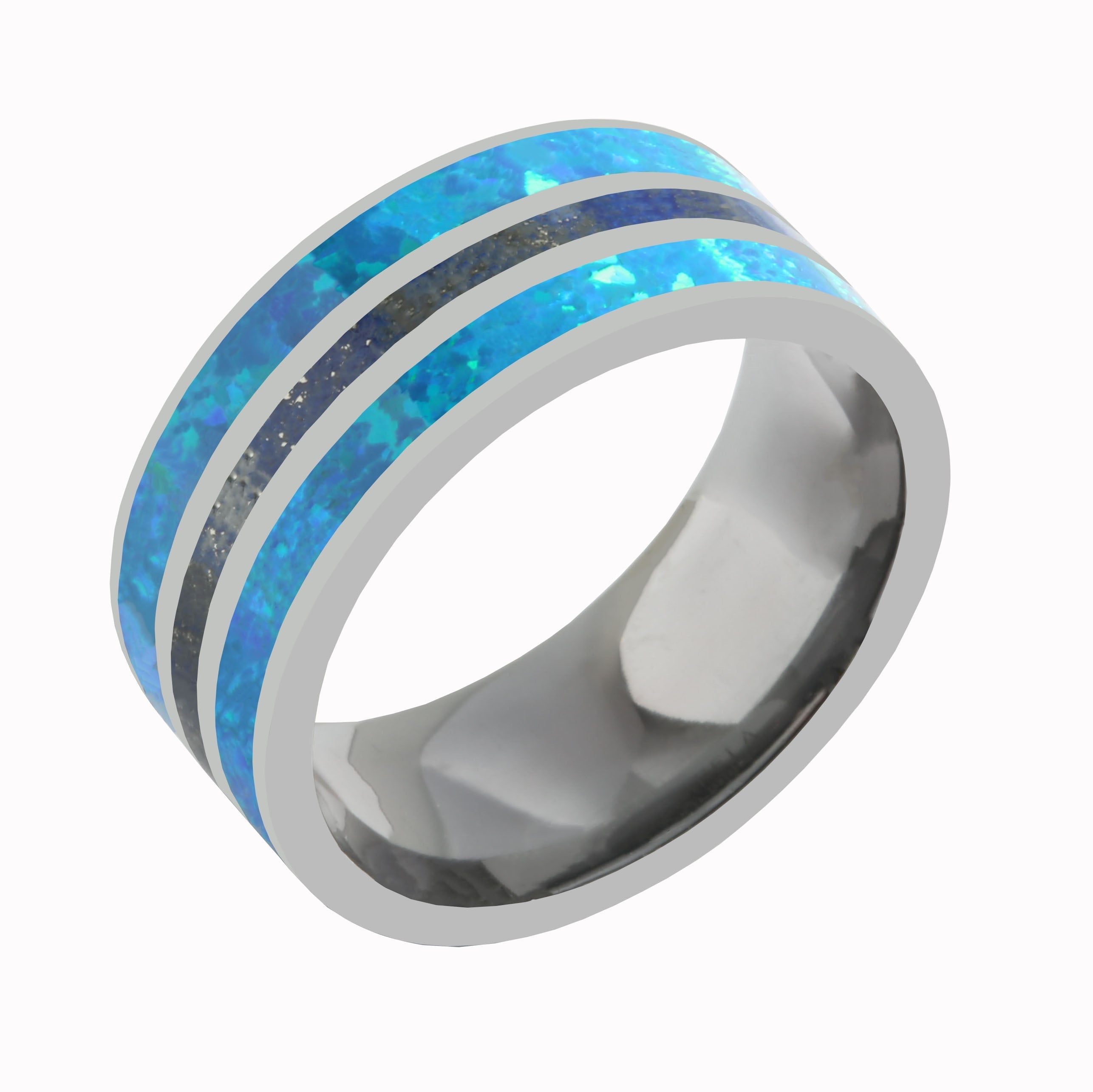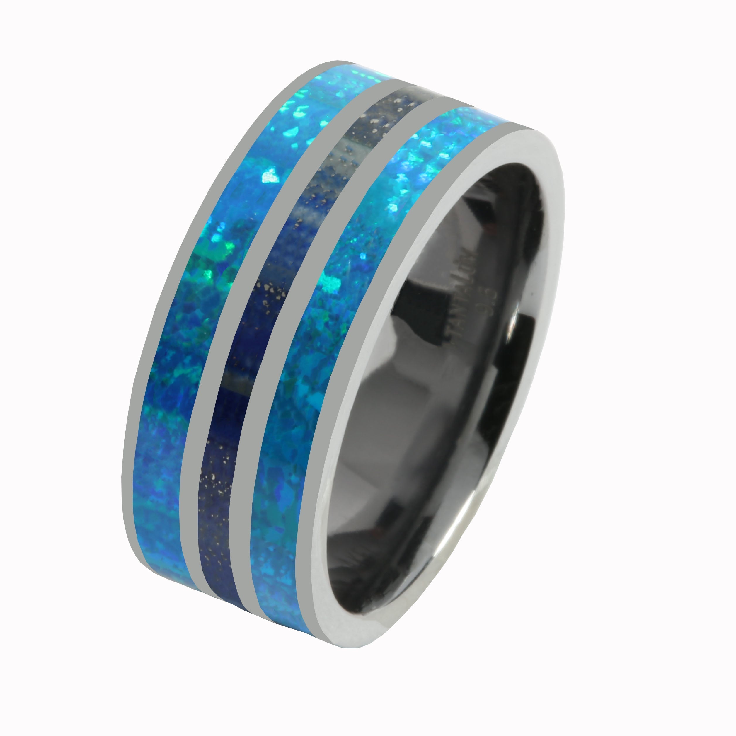 Tantalum Ring with Lapis Lazuli and Blue Opal Inlaid Wedding Ring Flat 10mm
