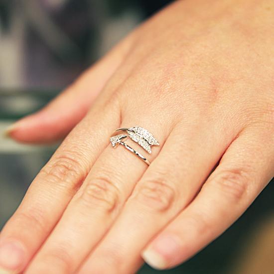Solid 14K White Gold Arrow Ring with 0.15 ct. t.w. Diamonds