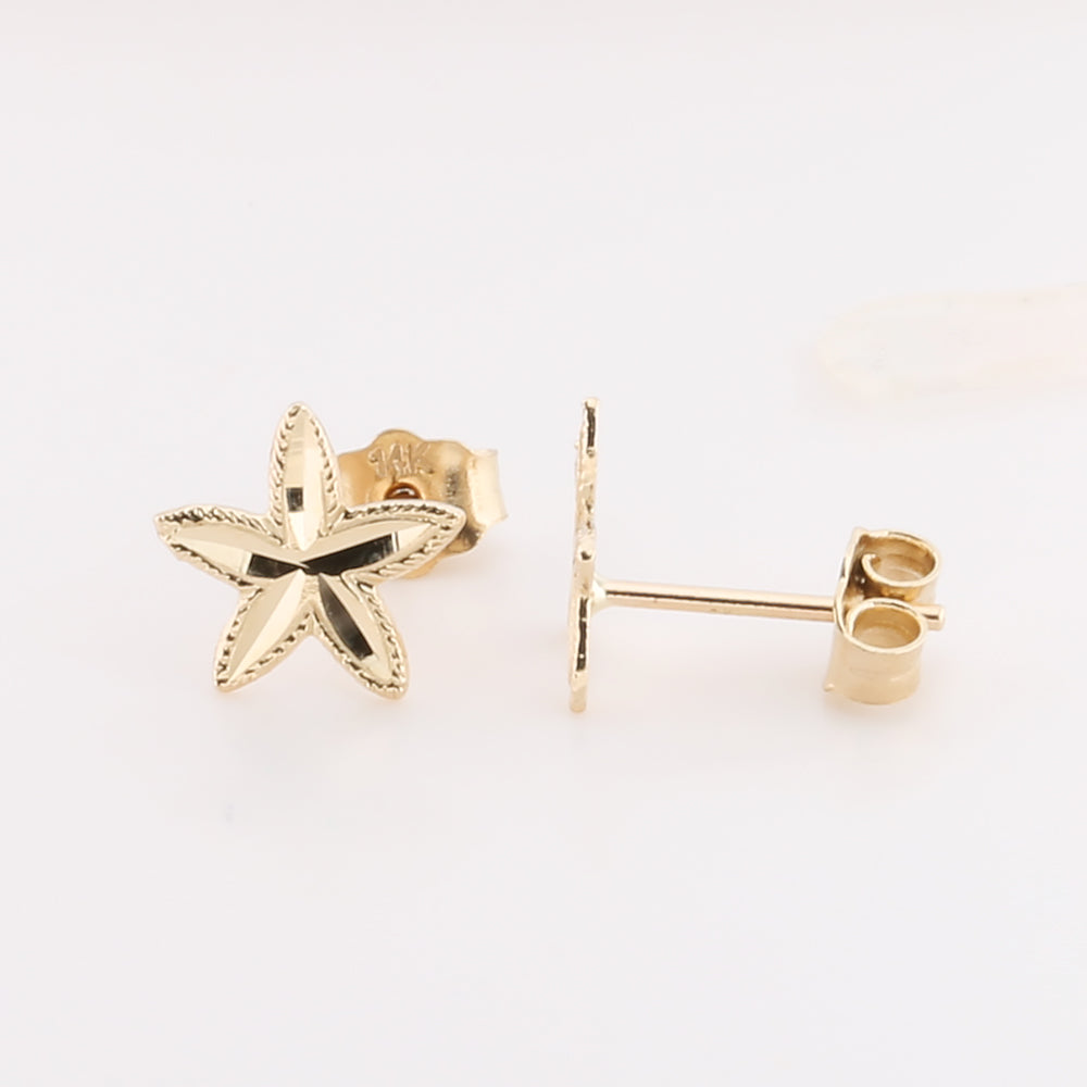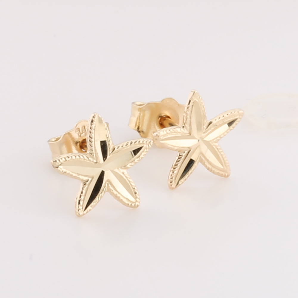 14K Sold Yellow Gold Small Starfish Earring Stud