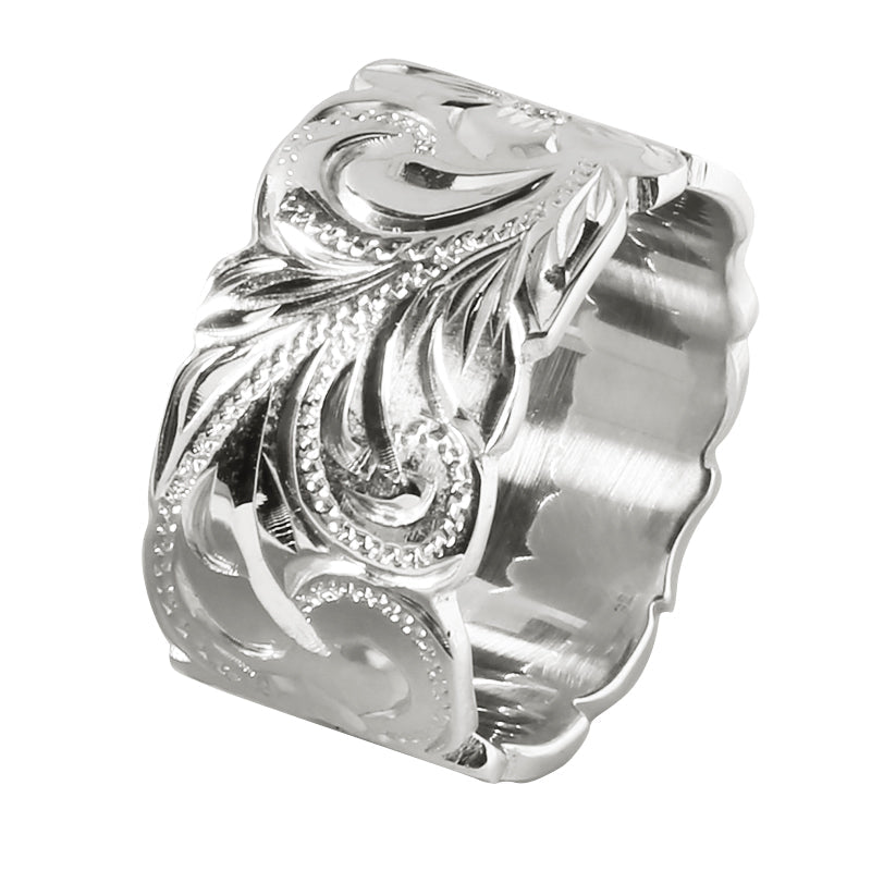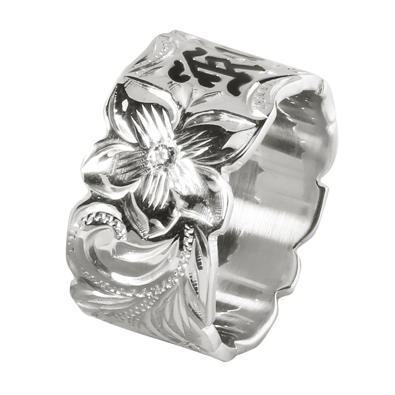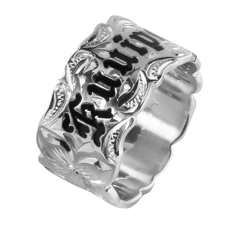 Sterling Silver Custom-Made Hawaiian Heirloom Ring Black Enamel 12mm Cut Out Edge (Heavy Weight)