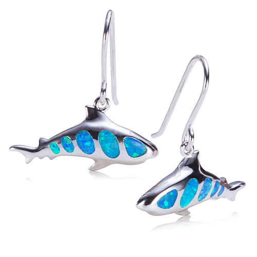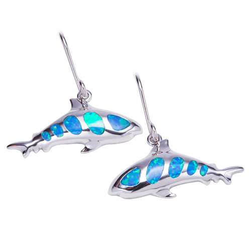 Shark Sterling Silver Earring Hook Style Opal Inlay